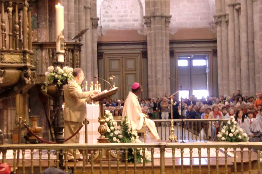 Beispielfoto 2011. Afrikanischer Bischof predigt. Caminho Portugues von Porto aus gestartet.