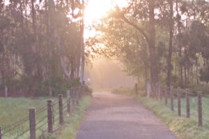 Schon bald kommt die Belohnung. Ein traumhafter Gang durch einen Eukalyptuswald entschädigt. Die Morgensonne entfaltet langsam ihre volle Kraft, wir inhalieren sie, genießen sie, wären da bloß nicht immer wieder die kurzen, dafür steilen Anstiege, egal ob im Wald oder auf den Fahrstraßen. Langsam zehrt nicht nur alles an den Nerven, die Kraftreserven scheinen aufgebraucht.