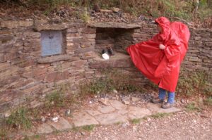 Unser vorletzter Pilgertag neigt sich dem Ende zu. Die Gedanken springen hin und her, vor ein paar Stunden noch schmunzelten wir anfangs über ein kleines Denkmal, ich weiß gar nicht mehr, wo es sich befand: In einer Grenzmauer eingelassen ein paar Wanderschuhe. Das Schild daneben ließ das Schmunzeln dann gefrieren. Es wies auf einen Pelegrino namens Guillermo hin, der offensichtlich am 25. August 1993 verunglückt sein muss. Erinnerungen an Azebo werden wach. + Foto oben.