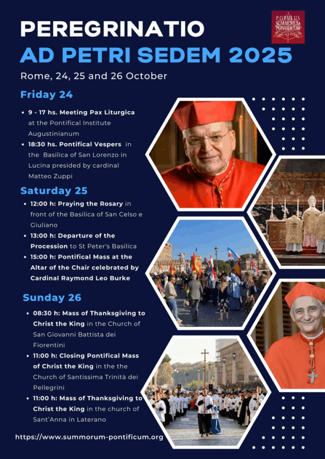 im Rahmen der Wallfahrt Summorum Pontificum 2025 vom 24. bis 26. 10.2025. Der Vatikan unter Papst Franziskus hatte vor einigen Jahren die zuvor übliche Zelebration der sog. Alten Messe (Klassischer Römischer Ritus, Überlieferte Messe aller Zeiten, Missa Tridentina, Traditional Latin Mass, Vetus Ordo, Ordo Missae) verboten.