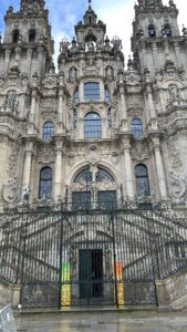 Kein direkter Zugang mehr zur jahrhundertealten Porta de la Gloria. Fotozusammenschnitt 2011 + 2024. In 2011 war die Welt noch in Ordnung. + Raimund Joos, Autor des Pilgerführers Camino Frances, Ausgabe 2024, sieht es wie ich. Seine Worte auf Seite 249: treffend gut formuliert.