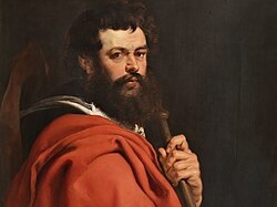 Der heilige Apostel Jakobus mit Pilgerstab, Hut und Kalebasse, Kathedrale Santiago de Compostela. Vom Märtyrer zum Patron der Pilger und Aussteiger. Furchtloser Kämpfer für verfolgte Christen. Ja’akov): Gott schützt. Der Berg der Verklärung, die Kathedrale des Apostels, steht für die Sehnsucht nach einer zukünftigen Welt.