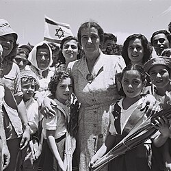 FotoQuelle: File:Golda Meir with children of Kibbutz Shfayim.jpg – Wikimedia Commons (07.03.26)