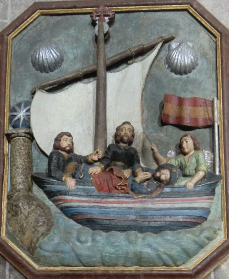 Saint James was the brother of the beloved disciple John and the son of Zebedee and Salome. Jesus called both James and John while they were working with their father, mending their fishing nets in their boat. Their response to Jesus’ call was immediate: “…they left their father Zebedee in the boat along with the hired men and followed him” (Mark 1:20).