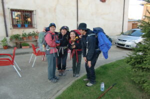 Fotobeschreibung: von lks. nach rechts: Für mich „wahre Pilger“ aus Korea + Die begüterten VIPs, ebenfalls aus Korea) gleichermaßen wahre Peregrini: Reisebericht Etappe 21: Bercianos de Real Camino über El Burgo, Reliegos nach Mansilla de las Mulas, 27 Kilometer + Ein koreanischer Ex-Minister und eine Olympiasportlerin von München beeindrucken. + Oder Webseite: Dort, wo Pilger aller Länder sich treffen: bitte scrollen zu: Begegnungen in Fromista und Mansilla de las Mulas +